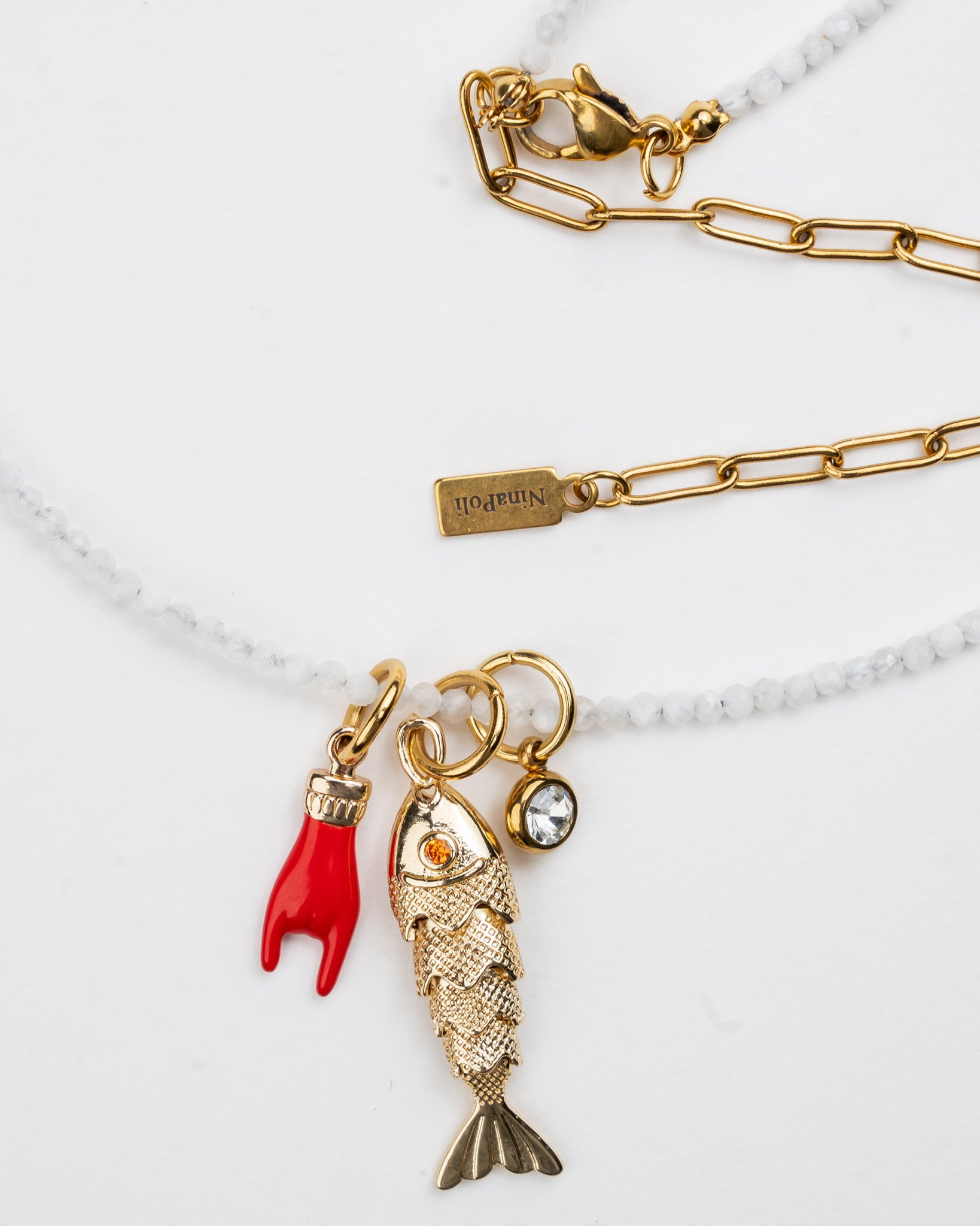Moonstone with Fish Charm Necklace